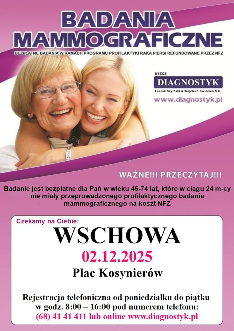Bezpłatne badania mammograficzne we Wschowie – 2 grudnia 2025 r.
