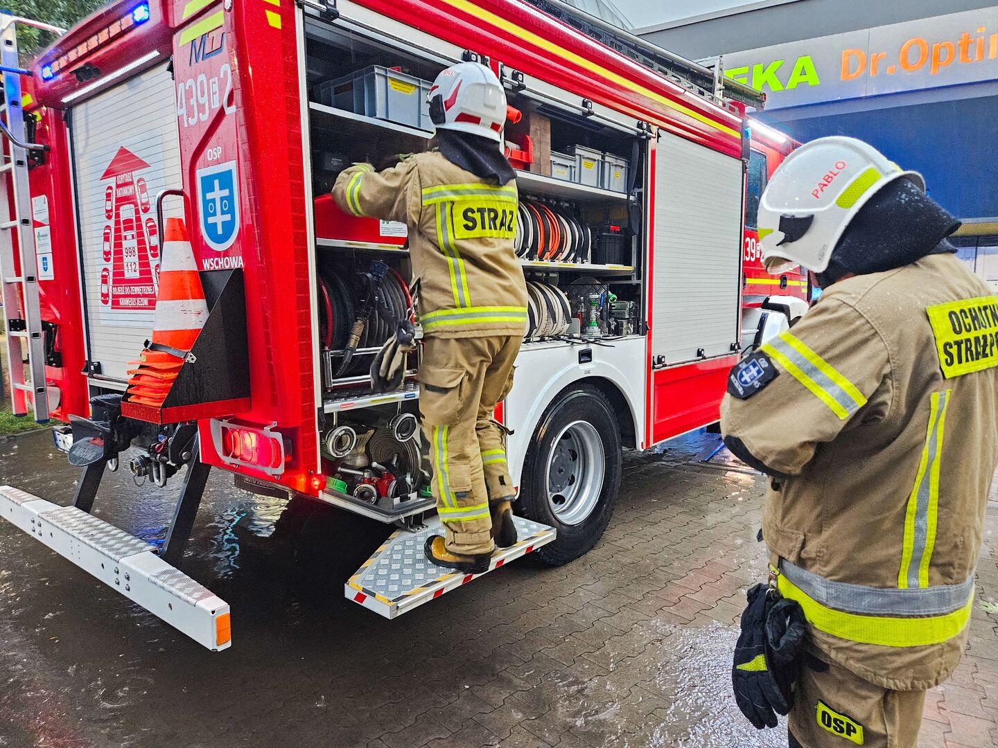 Nad Gminą Wschowa przeszły silne opady deszczu połączone z burzą. Najmocniej padało między godz. 5 a 6, a spory opad spowodował lokalne podtopienia. Do akcji wyruszyli m.in. strażacy ochotnicy, którzy pomagali mieszkańcom uporać się z nadmiarem wody. OSP Siedlnica działało w rejonie ul. Kazimierza Wielkiego we Wschowie, gdzie doszło do zalania piwnicy bloku. OSP Wschowa pompowało wodę na parkingu przy marketach (ul. Moniuszki). Dziękujemy za sprawnie przeprowadzoną akcję i za wyrozumiałość mieszkańców.